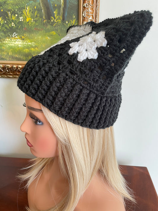 Granny Square Cat Beanie Hat