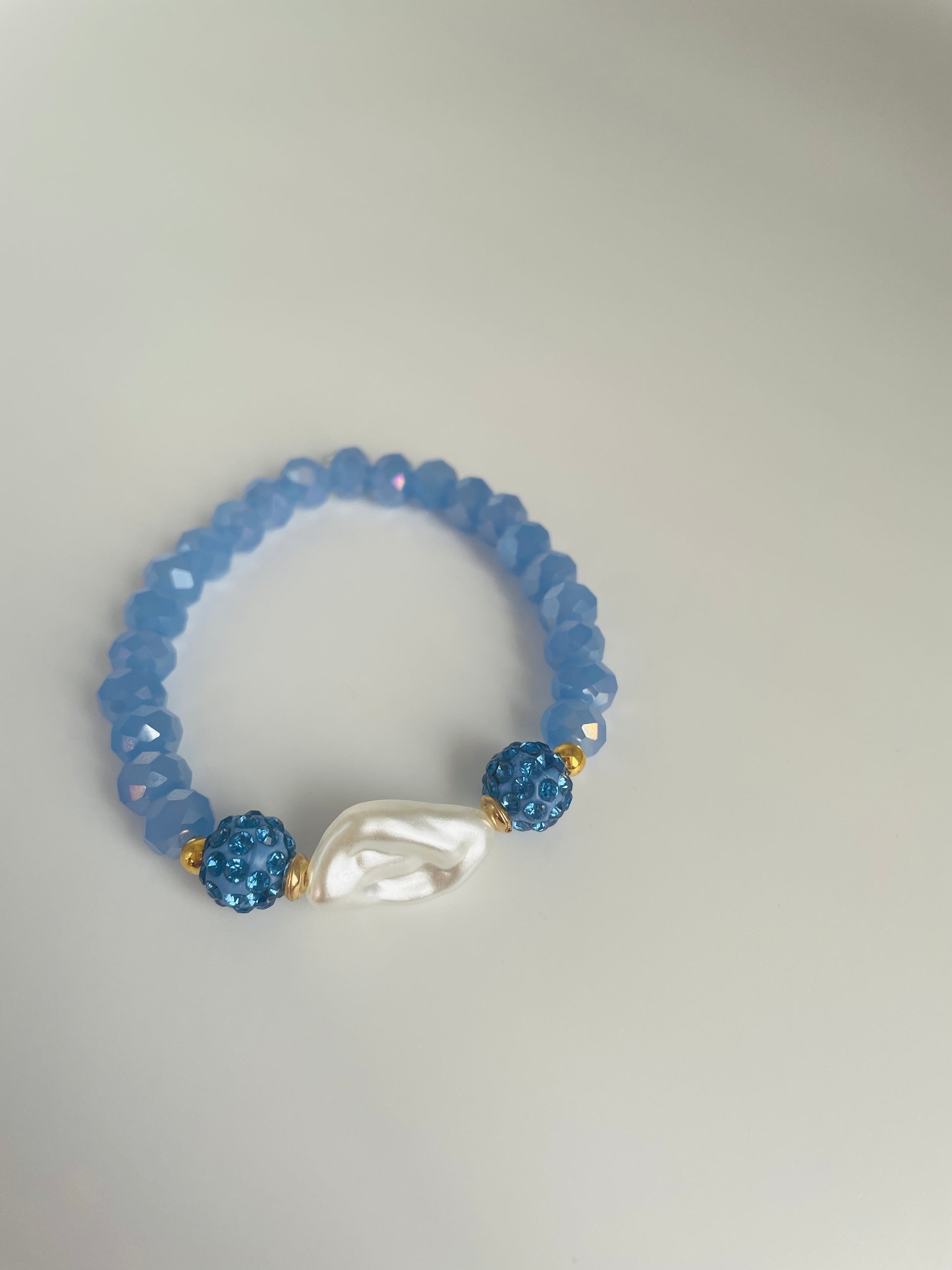 Bring a touch of peace, love and gentle energy to your everyday style with this beautifully handcrafted bracelet. Bracelet is made with blue glass beads and durable stretchy cord. Bead size: 6-10mm and stretchy cord fits most wrist sizes; lightweight, comfortable and flexible.